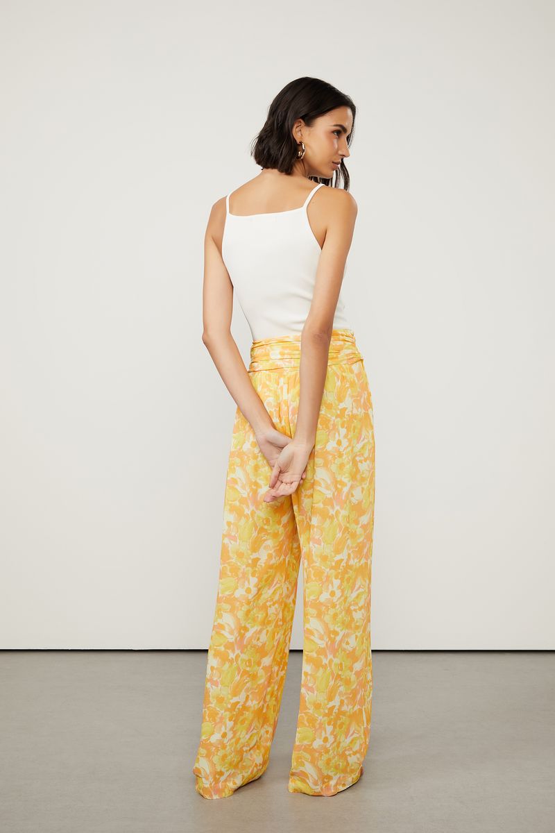 A Seda, linha best-seller, traz novos ícones para o verão, como a Calça Pantalona. Com pala franzida no cós e cintura alta, o destaque está na estampa Floral Leve, que ressalta a feminilidade da produção com uma proposta inusitada: o vestido mini da mesma padronagem sendo usado como blusa. Enquanto o full look traz sofisticação, a combinação com a básica regata branca oferece uma produção perfeita para o dia a dia.