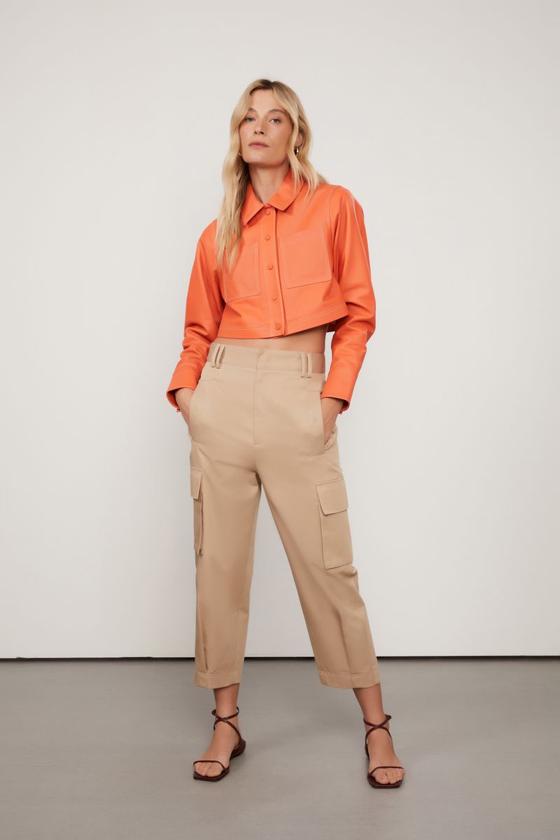 Aposta do alto inverno, a Jaqueta Cropped de Couro é um must-have atemporal, que ganha ares de inverno nos novos tons neutros e exclusivos da coleção, como o Laranja Arte. Sua modelagem garante durabilidade e conforto, com gola colarinho, bolsos frontais, fechamento por abotoamento, e recortes pespontados. Um item indispensável para quem não abre mão dos clássicos eternos no closet. Para complementar as produções, a Jaqueta transita entre o sofisticado total look de couro, e um visual contemporâneo com alfaiataria explorando o color blocking.